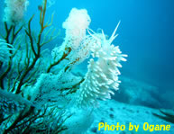 POINT ヒラメポイント IN 10:16 OUT 11:00 最大水深24m 透明度7m POINT 宝島東 IN 13:30 OUT 14:21 最大水深20m 透明度8m 昨日に引き続き、ツアー2日目。 お約束のヒラメはエントリーしてすぐに70センチメートル級、その後も梅が80センチメートル級を発見!!一人大きさを確認しようとフィンを近づけると、踏まれると思ったのか、ぶ〜んと泳いで逃げちゃいました。けれど親分がもっと大きなヒラメを次から次へと見せてくれるので、今日は被写体には困りませんでした(^^;。また大きなギスカジカもいたりと 何かと大物と遭遇できました。宝島にはいつものアイナメ、オキカズナギ、メバルの他、ホッケにも逢え、大満足の海です。そろそろシーズンですね。 |